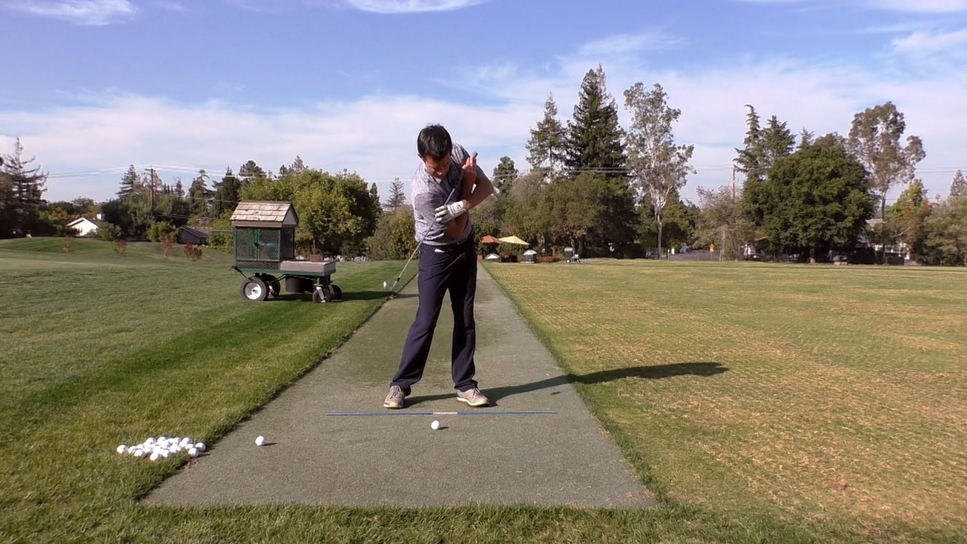 This is a great drill to practice the combo move of rotation, flexion and side bend. Get into set up with a club across your shoulders, then turn so that it is pointing down toward the golf ball. Make sure that your weight is on your left foot and toward the heel.