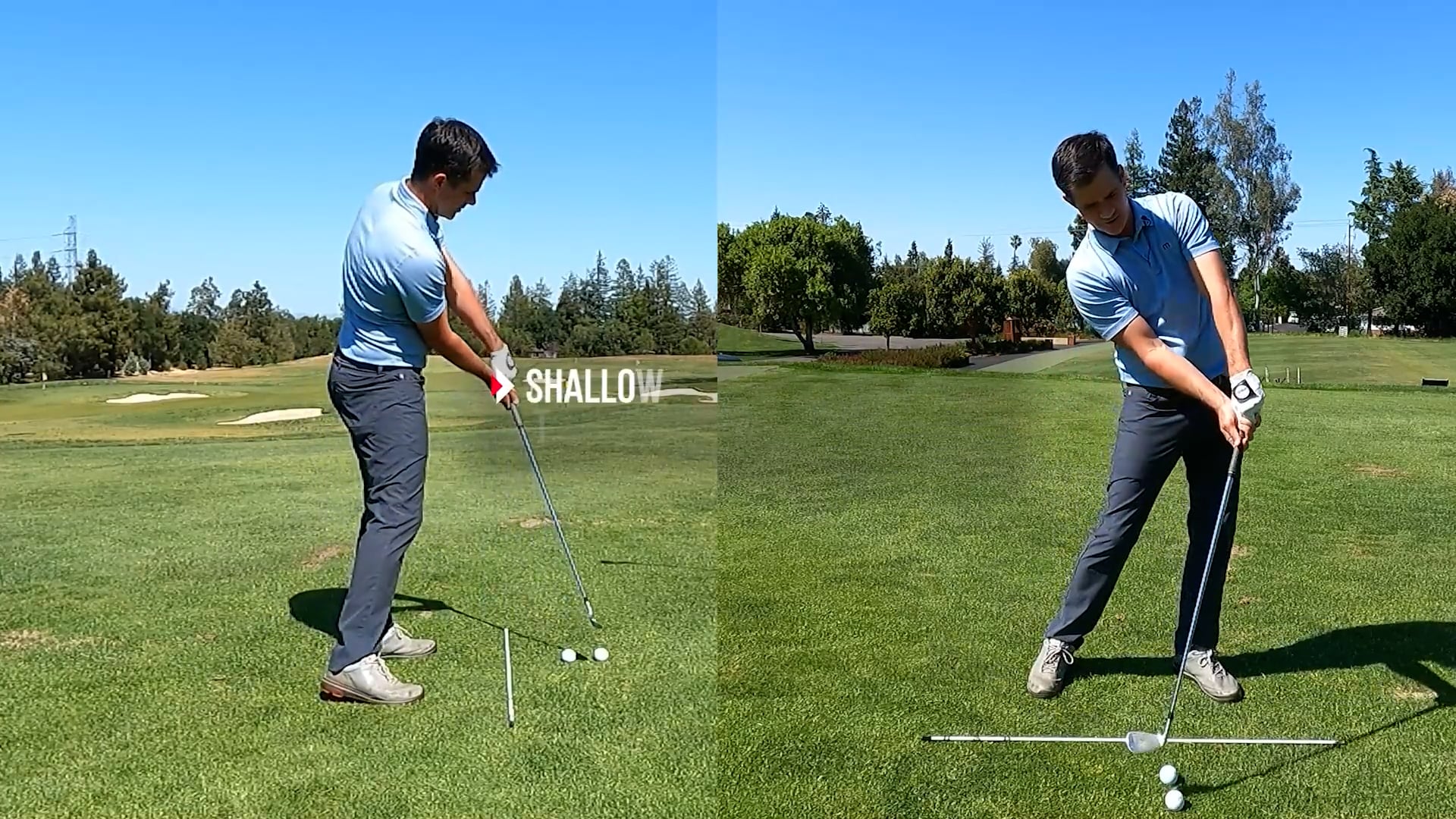 Steep early happens when you pull too much with your arms and back instead of using your hips and core. This causes the club to work more vertically and requires a major shallowing move. The common major shallowing move is standing up (early extension) and limiting rotation. Sometimes it's accompanied by excessive right bend. This causes a quick change to the path that can be hard to control consistently.