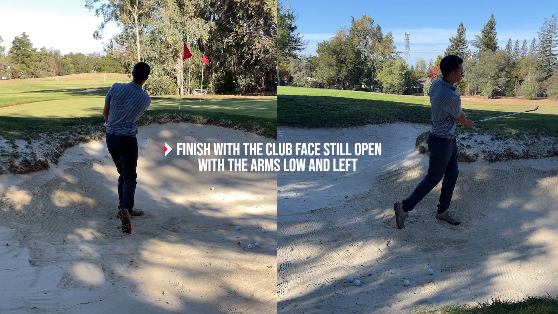 The follow-through checkpoint can be a really easy starting point for training your Stock Bunker Shot.
