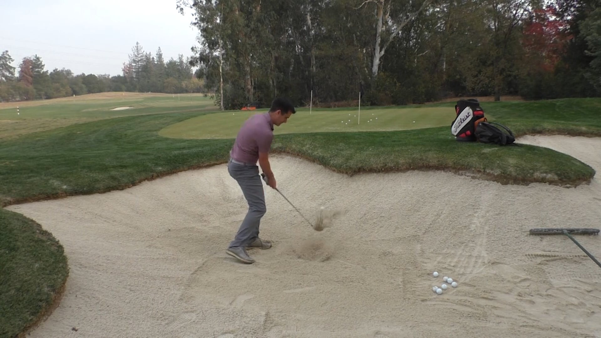 Many golfers that struggle with bunker shots end up creating too much shaft lean through an over-active lower body. While this may be desirable for a normal full-swing, we have to remember that good bunker play is dominated by the arms. Or in other words, we want the clubhead passing the handle at impact, which then allows us to more easily control the bounce of the club. In your next warm-up, try this simple cue with a few sand shots before heading to the first tee and be sure to note any differences in contact and control.