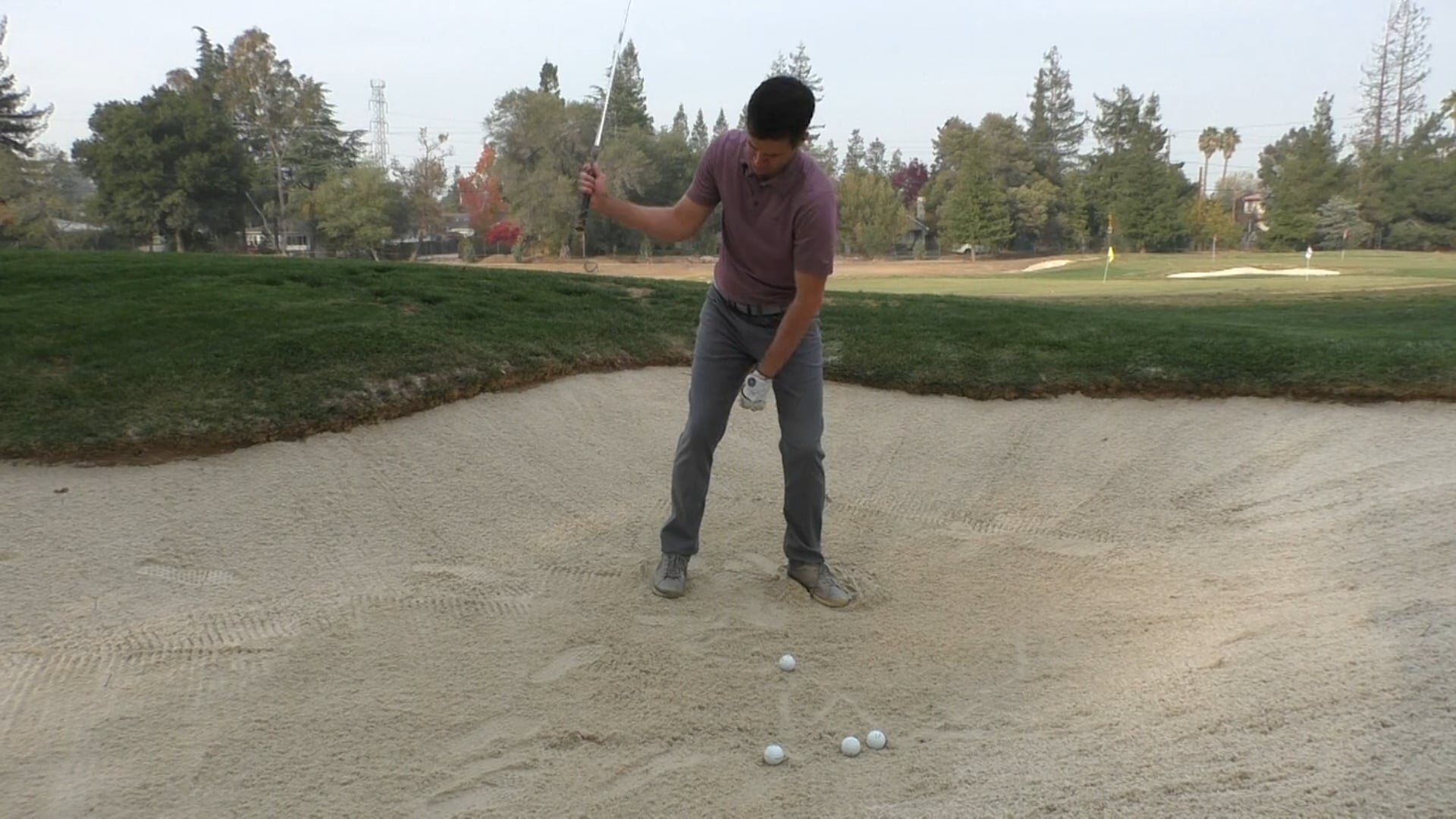 This is a great bunker drill from Stan Utley that was discussed in his book, "The Art of the Short Game". It is one of my favorite drills for golfers who tend to get too wide of a backswing in the bunker. Players who default to their one-piece takeaway and long backswing almost always bottom out before the ball, leading to thin and/or chunked shots. There are two variations for achieving the right amount of "narrowness" discussed here, so be sure to figure out which one works best for your game.