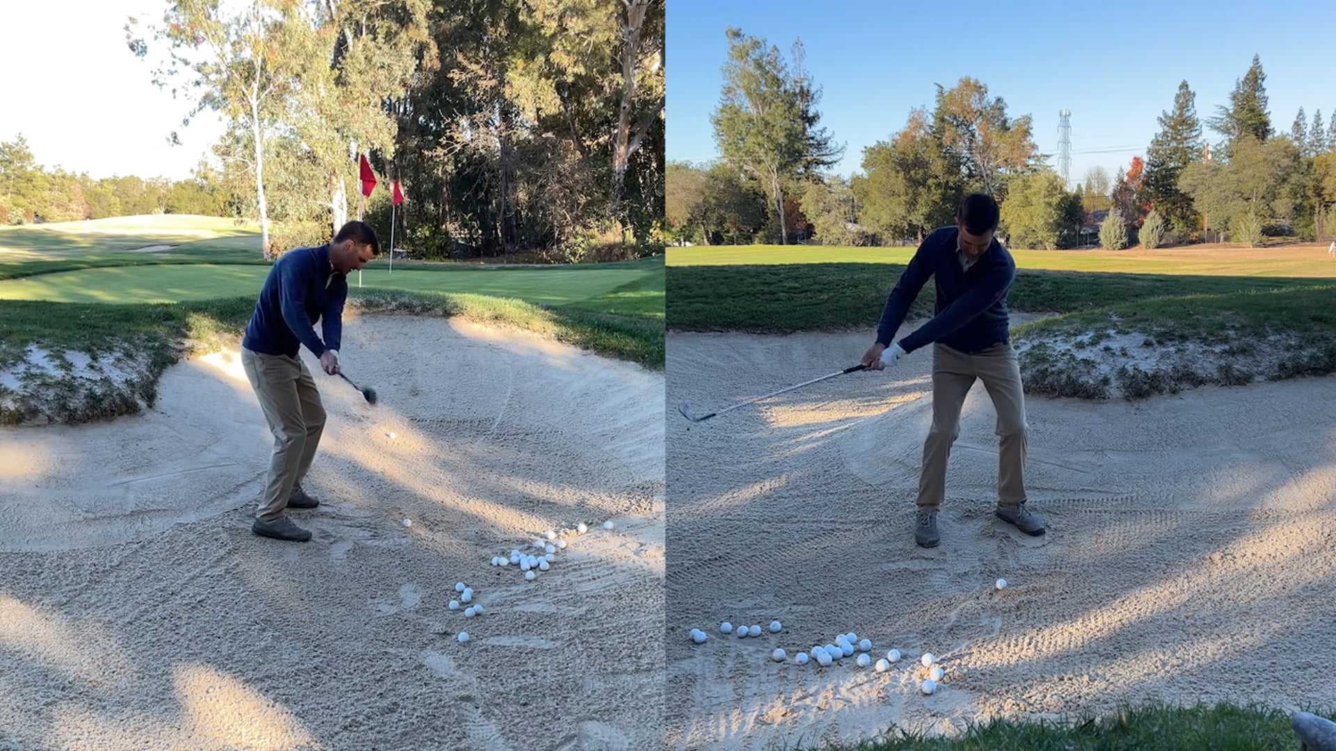 At GSA, we use the term "the wipe" to describe the motion of the arms and body sending the club in the direction of the target instead of the golf ball. This involves the trail arm working more in front of the body and the spine/core rotating to support it. But this combination creates a lot of shaft lean and lag. Neither of these things is desirable for the bunker shot. The bunker shot has more of a feel of a throw and coast, rather than a wipe and extend late.