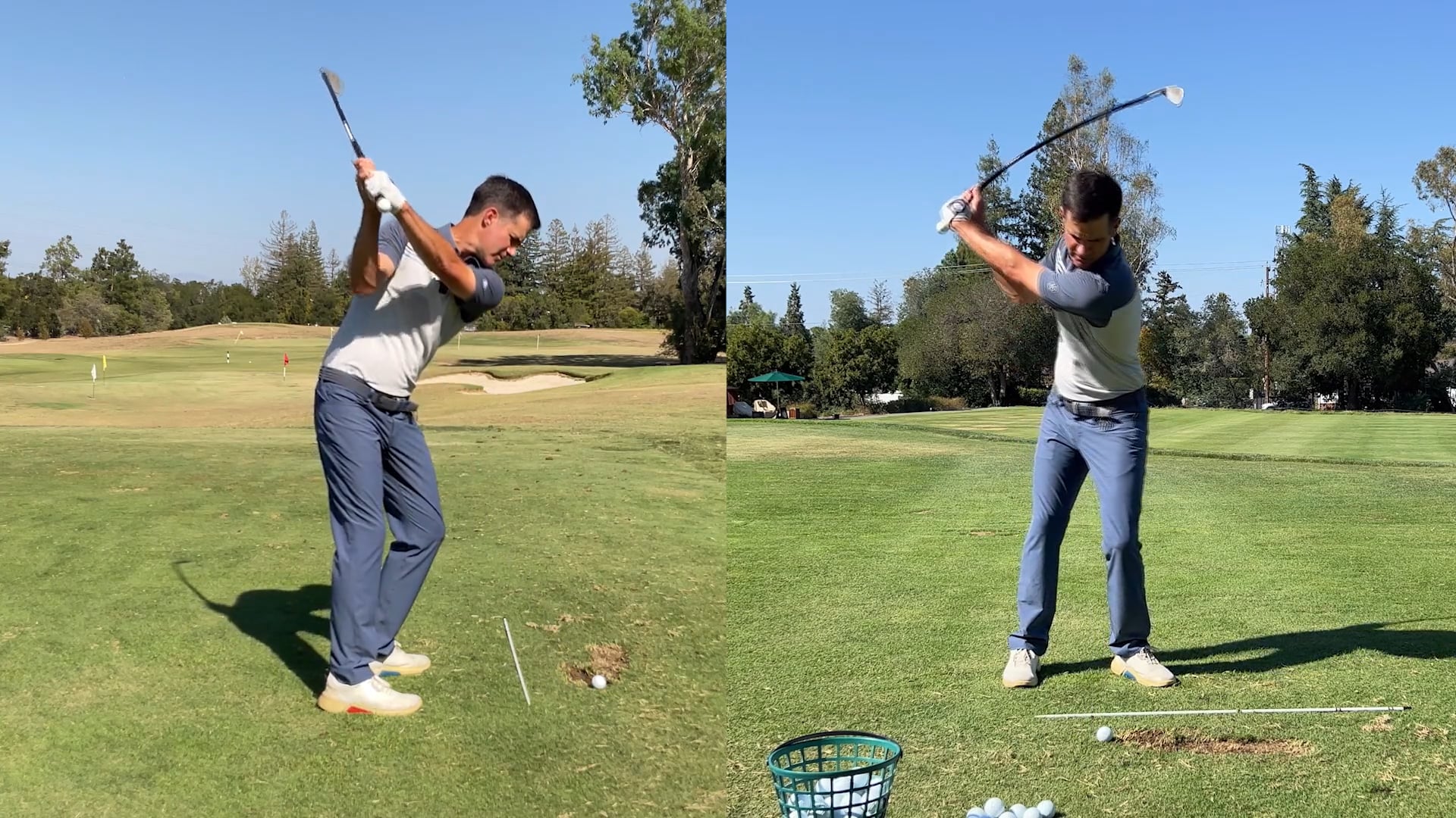 The Orange Whip Wedge can help you avoid pulling too hard in transition. The flexible shaft helps you feel a smooth application of force in transition and early downswing that helps make it easier to be smooth during the release. It can be helpful to count to yourself in your head, "one and two" when you train with this club.