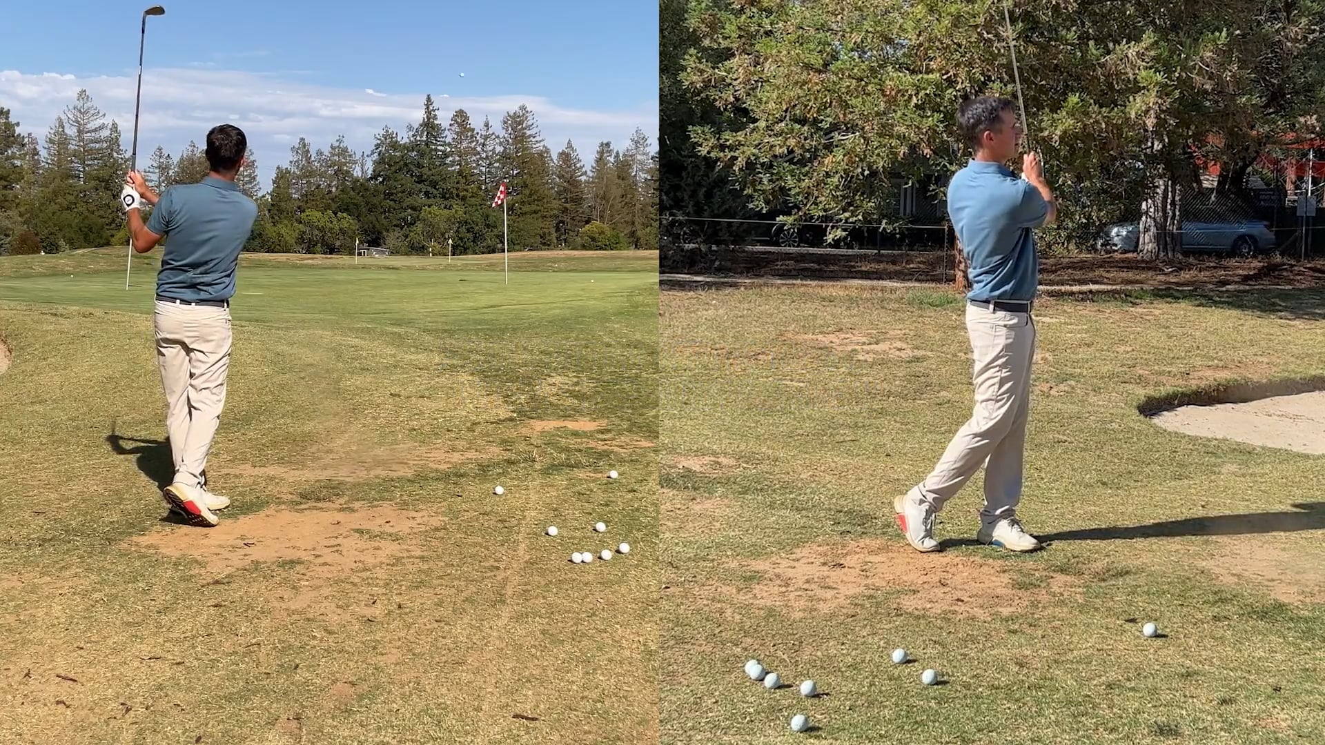 When playing off hardpan, you want to avoid blading it or chunking it with the leading edge digging into the dirt. One way to avoid this is to play the ball slightly back but then set up with the heel off the ground. The other swing adjustment that you'll want to make is making sure to hit it more with your pivot rather than a stall and throw.