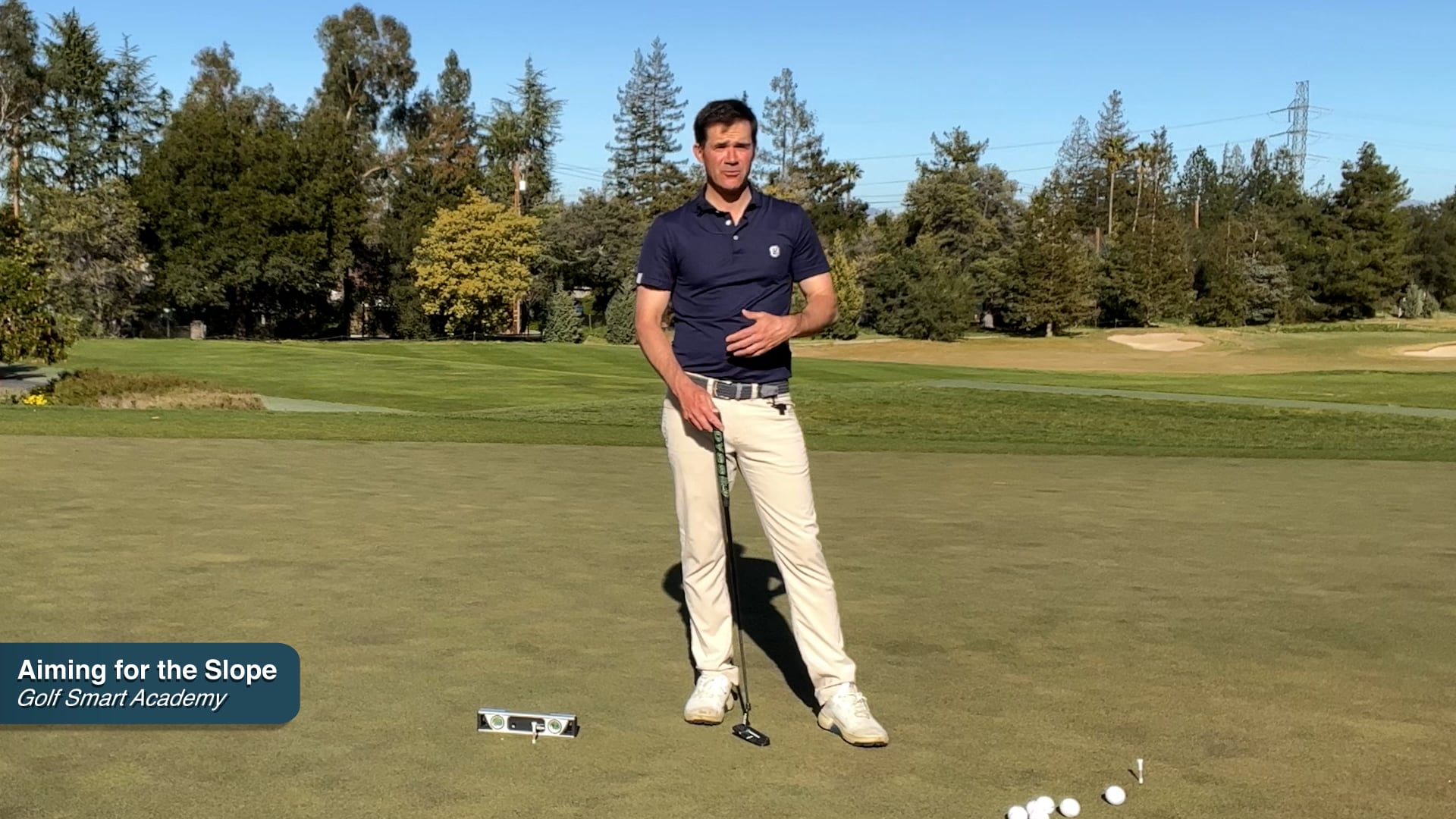 Here are two ways to aim your putt based on the slope you feel. This is a critical piece to learning how to read the green using your feel instead of your eyes and it takes some practice/experimentation.