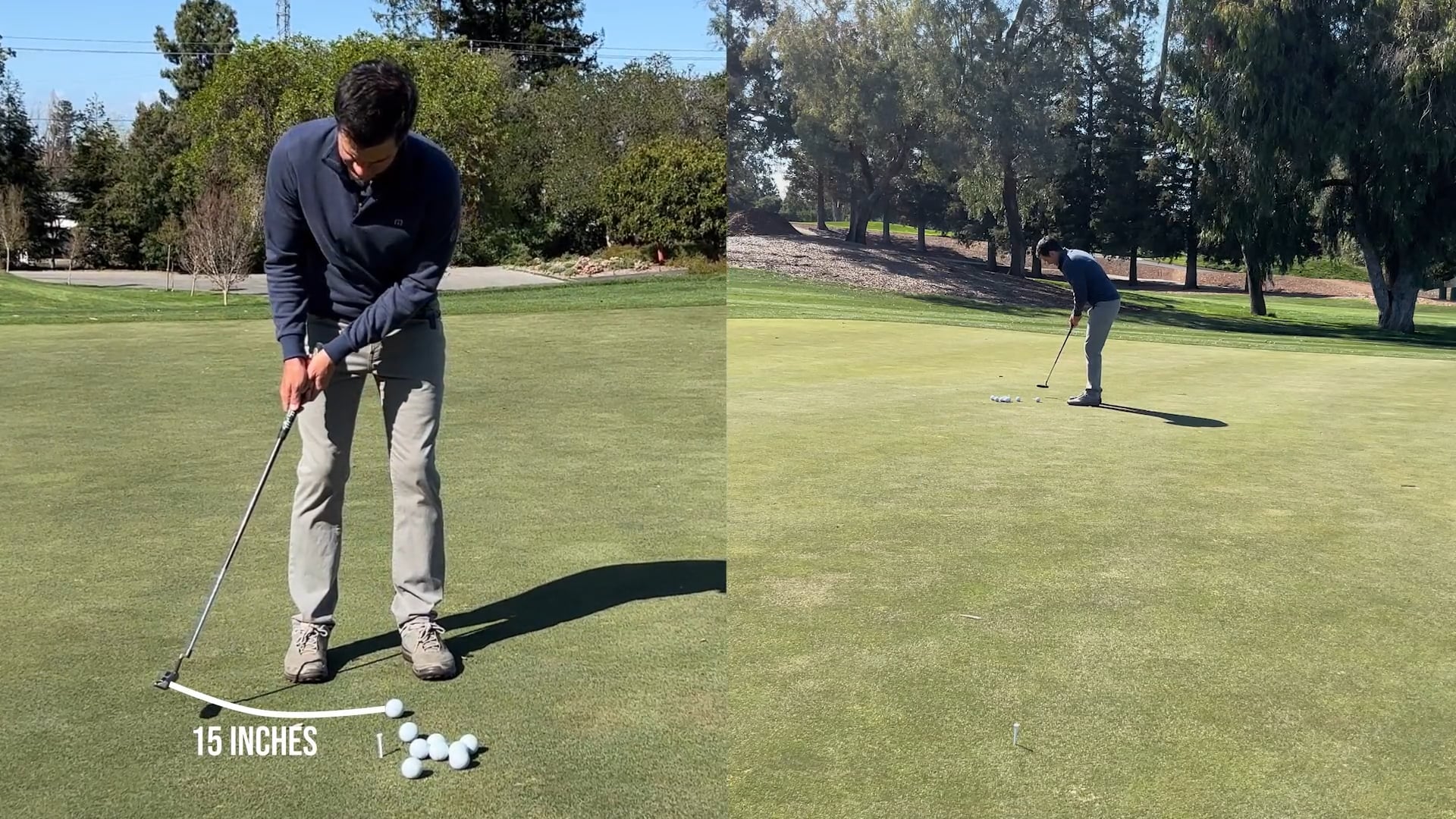 Hit from the top is a brilliant putting drill for combining the two factors for speed control